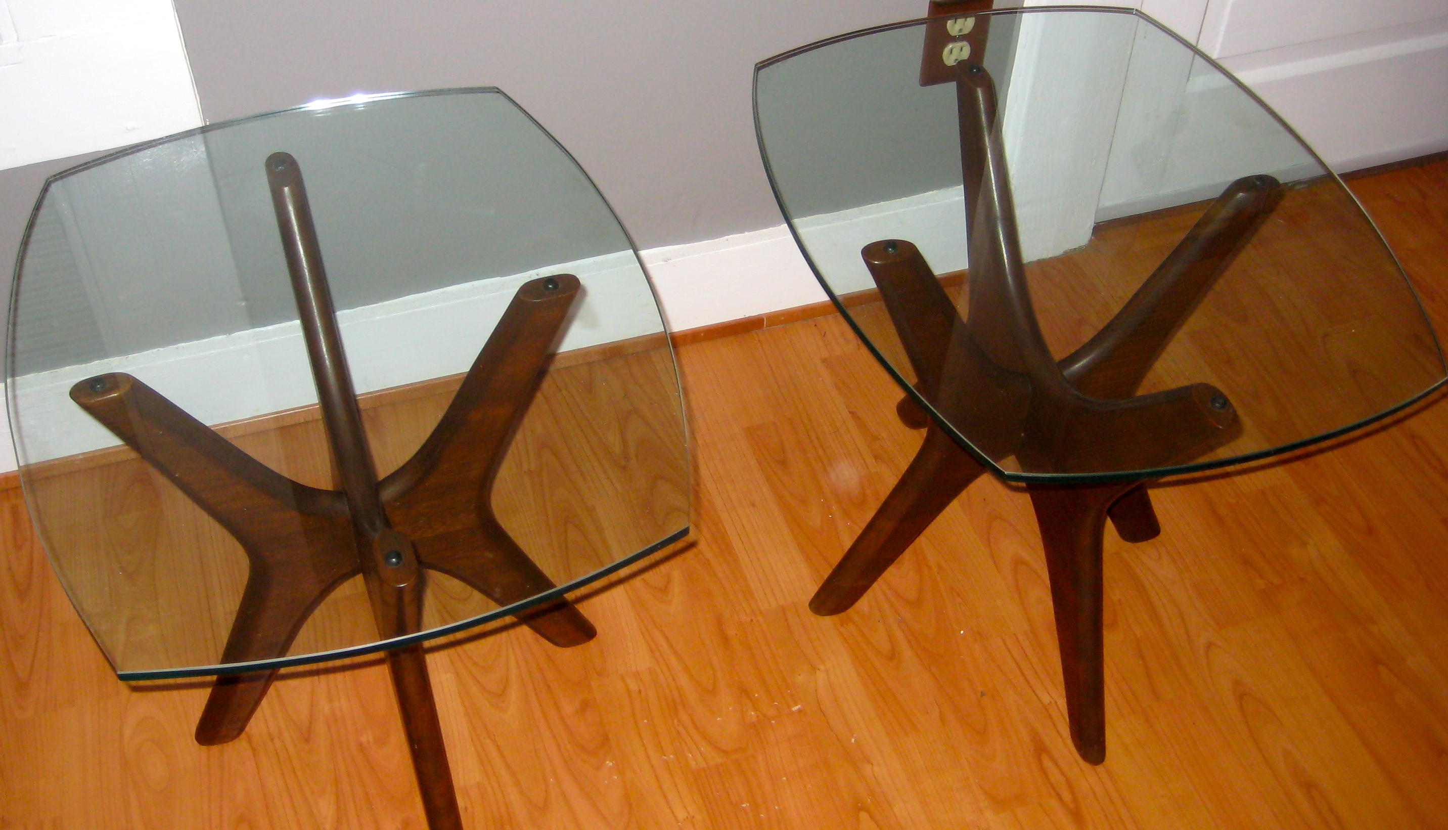 sold Adrian Pearsall for Craft Associates "Jacks" Side Tables We have a beautiful set of Adrian Pearsall walnut and glass side tables in excellent shape!