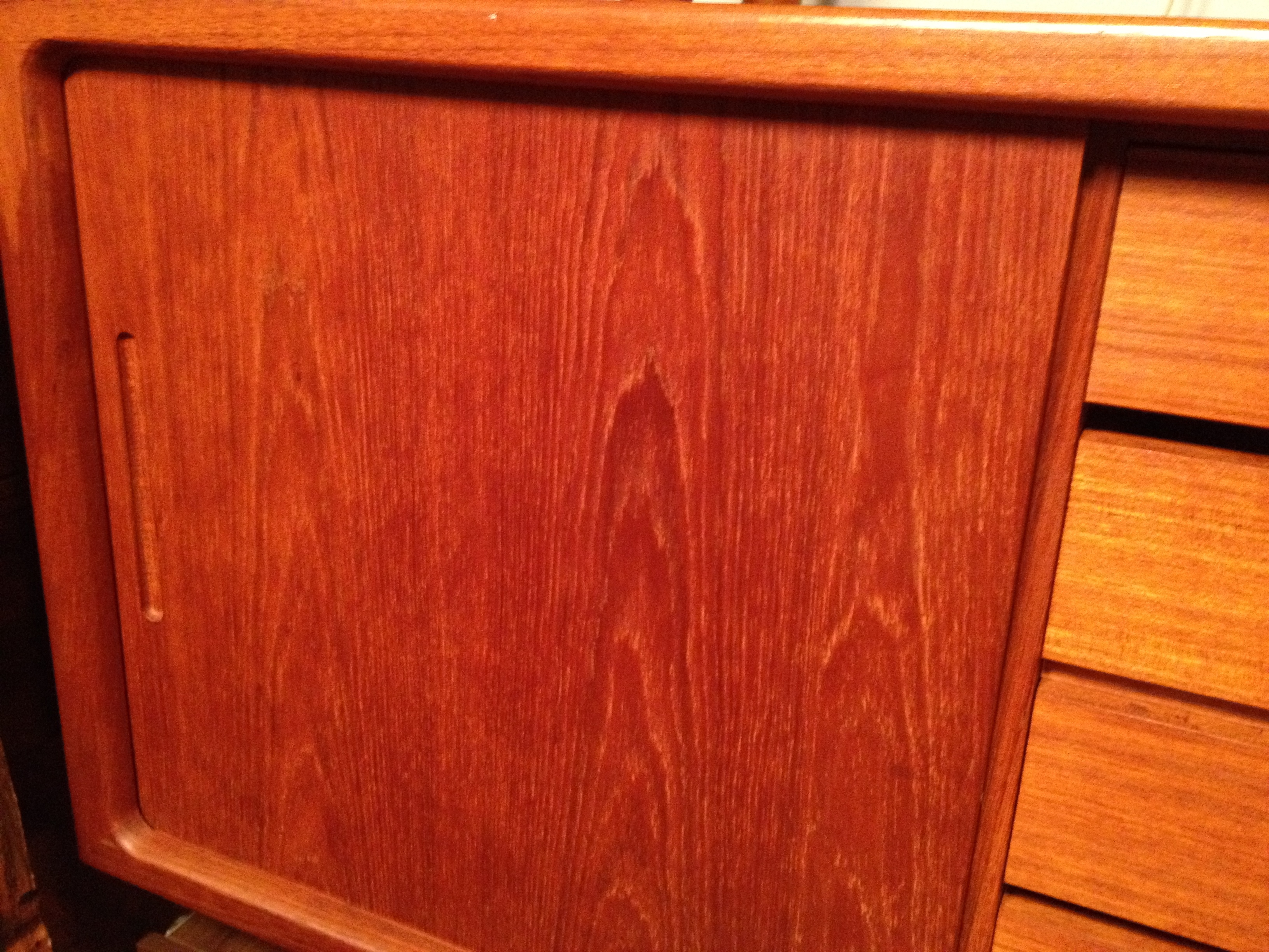 This is a vintage, mid century modern, Danish teak sideboard with hutch. In beautiful vintage condition with no damage and gorgeous lines.