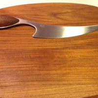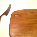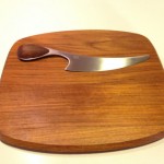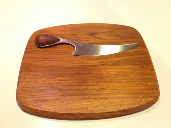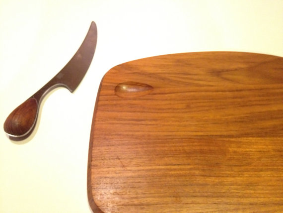 This is a beautiful vintage teak cheese cutting board with matching knife.