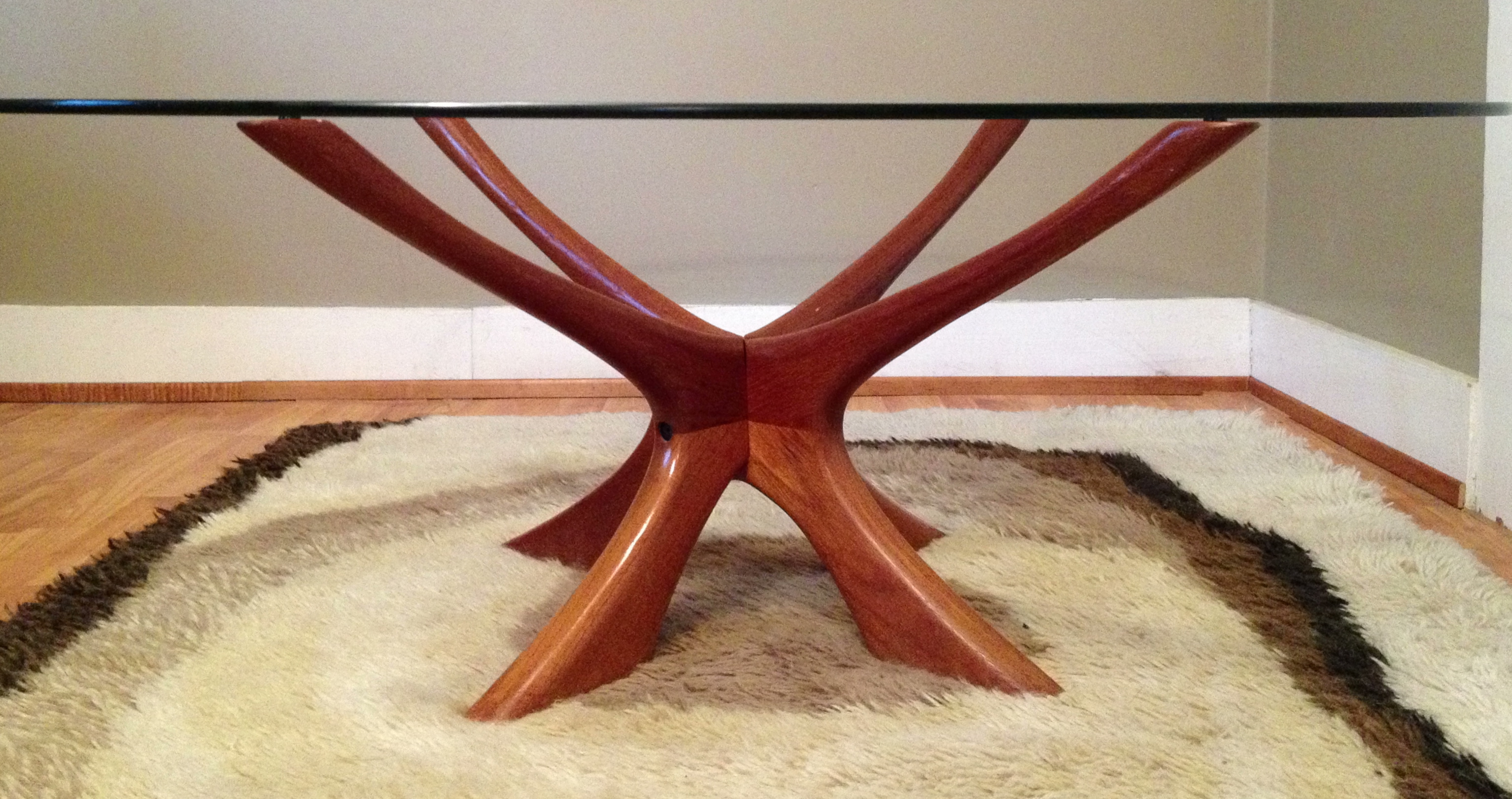 Beautiful Danish Modern Coffee Table by Illum Wikkelso. The glass top is not original but can be included if desired.