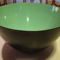 Designed in 1953 by Herbert Krenchel, this famous and gold medal winning design has a distinctive matte black exterior and bright turquoise blue enamel interior, and was only produced until 1966.